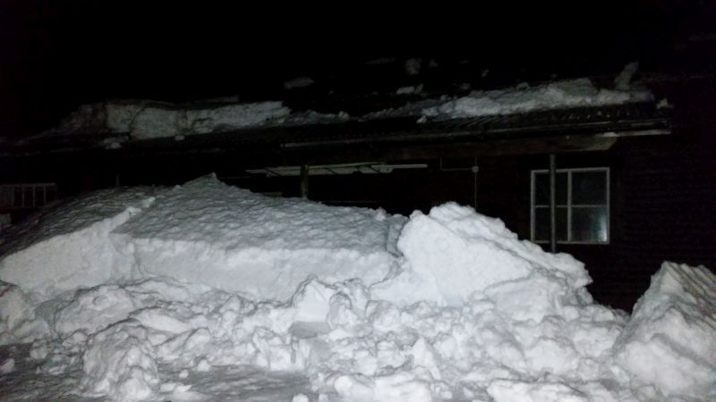 Idag rasade även i stort sett all snö från ”hitre” sidan av garaget, en hög som går nästan ända upp till plåtkanten på det lägre taket 😉 Nåja, det föll ju på marken och nu behöver vi inte fundera på ev skottning av taket….
